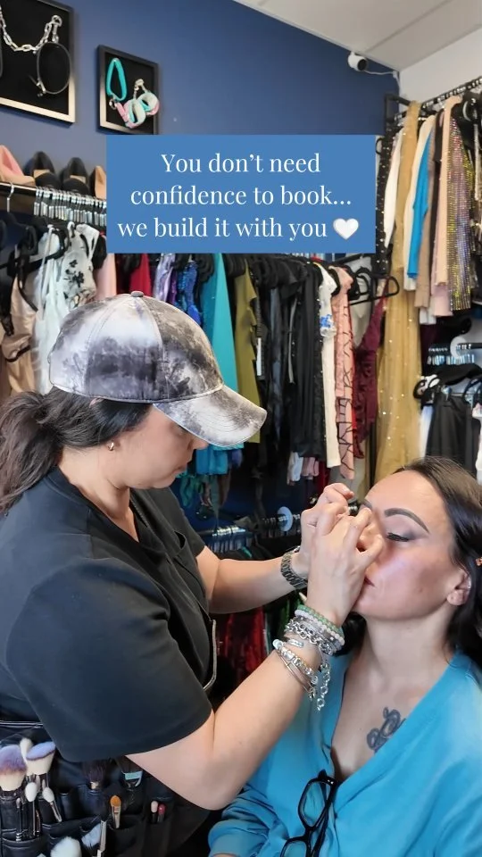 First things first. Someone from the Hot Mess Crew will greet you and get your booty into hair and makeup.